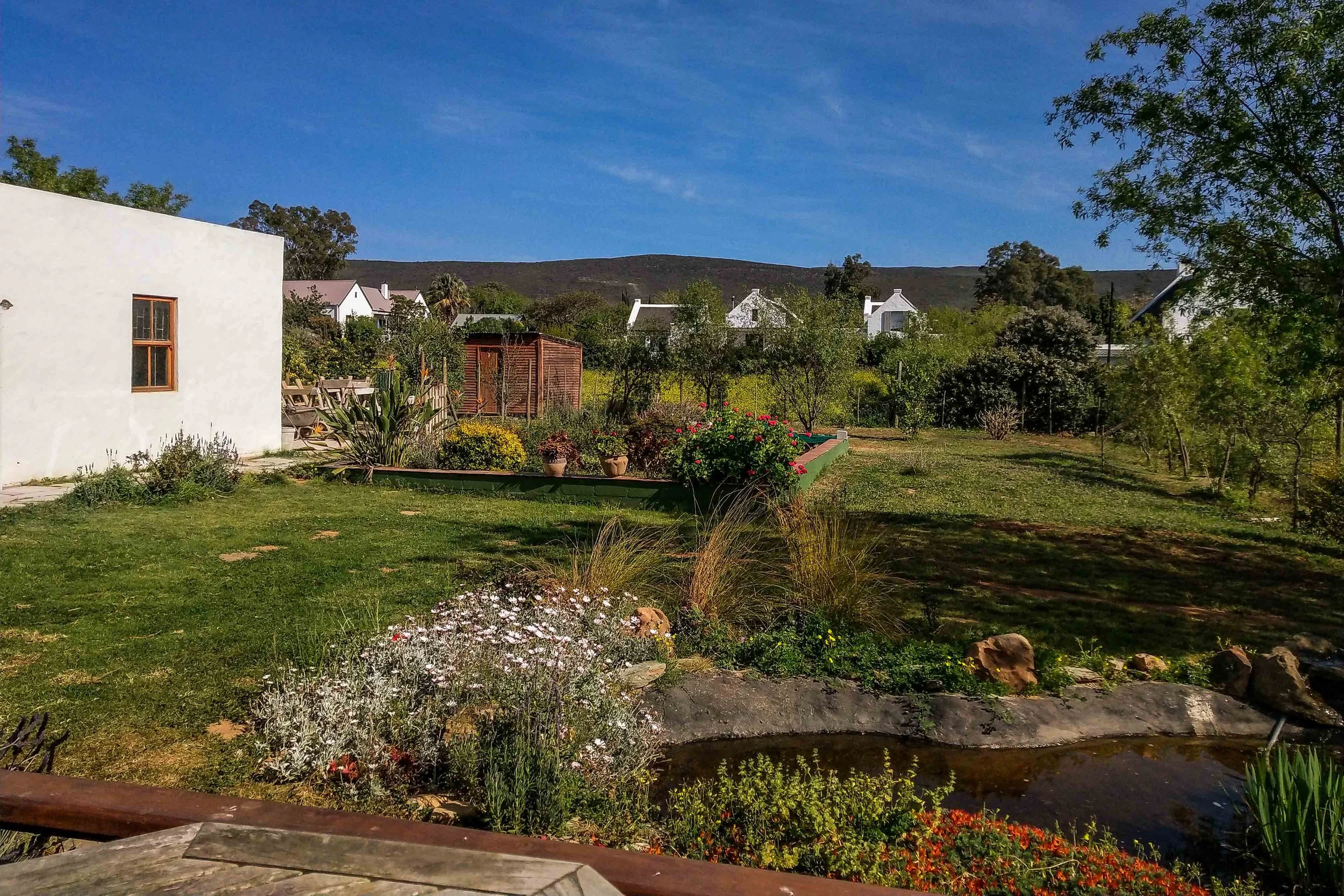 The garden itself is “in development.” There is a low-walled section that is ideal for growing vegetables, and plenty of room for fruit trees. The shed at the end of the garden offers immediate possibilities for “chicken ranching”. The previous owner had an extensive irrigation system but unfortunately al the pipes are buried, and no-one knows where they are. The pipes are only found when Martin or Barbara cut through one with a spade when planting. .