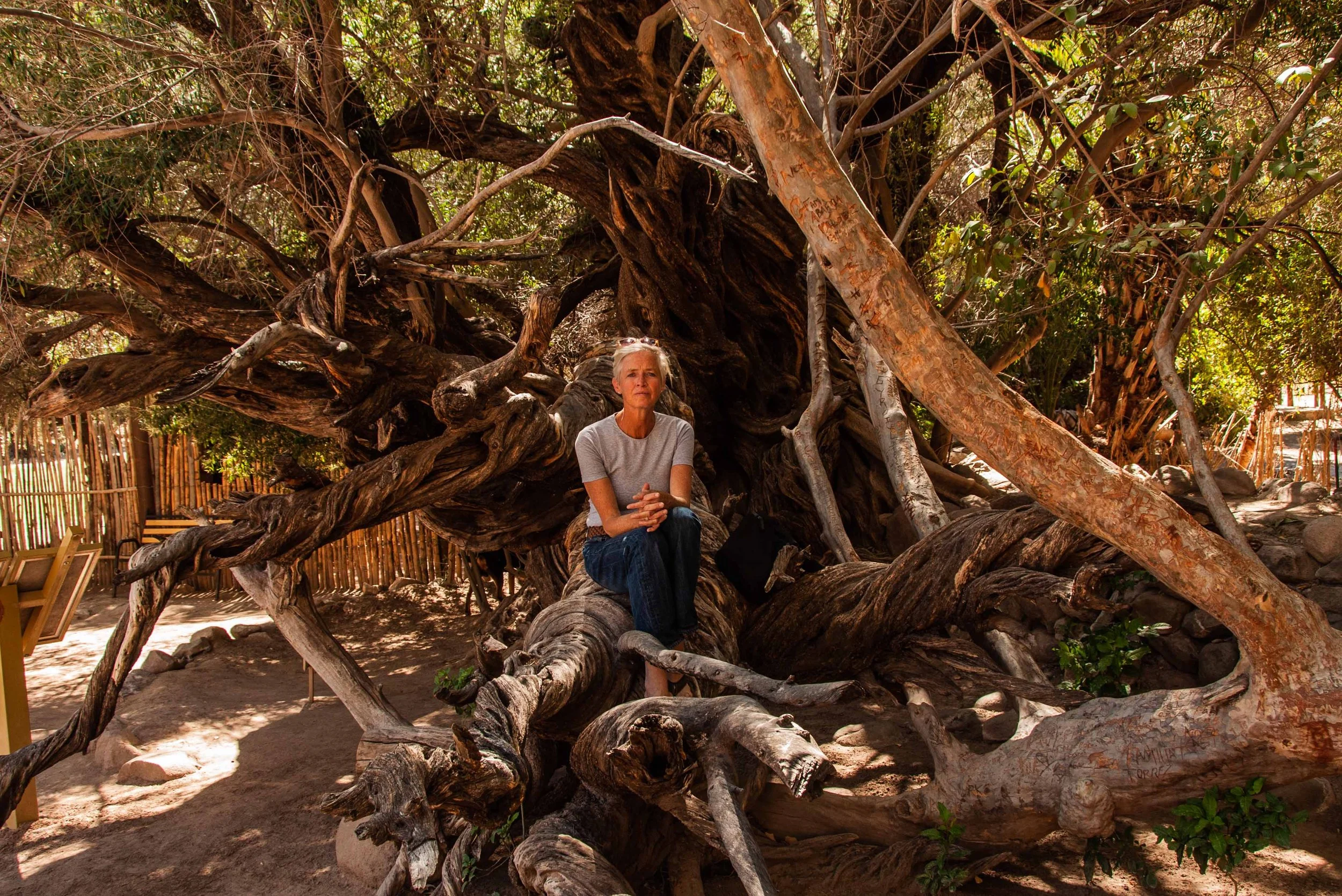 25. Sitting on the twisted limbs of a 300 year-old olive tree.