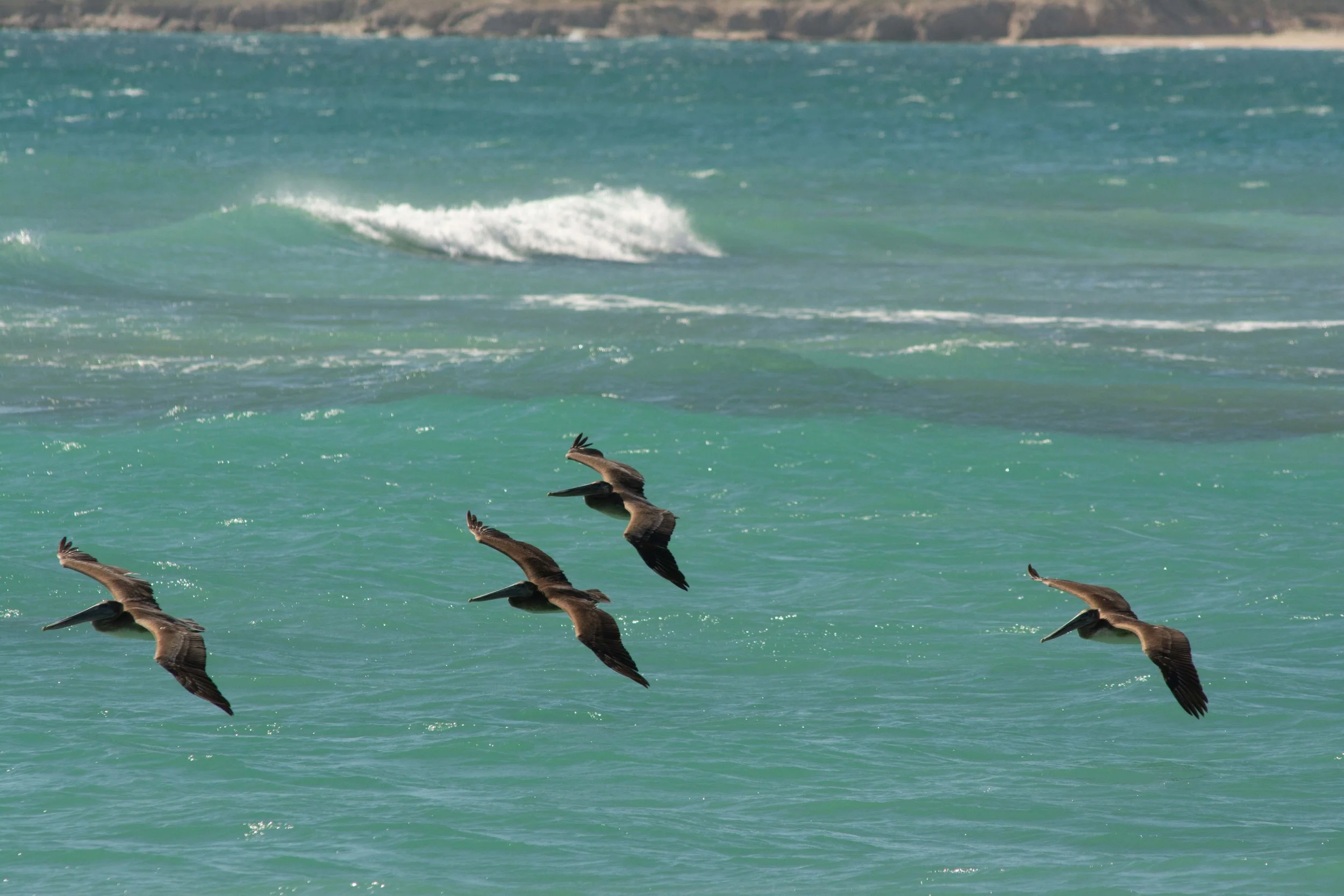 5. Brown pelicans are common along the coast, diving for fish, almost like large, ungainly, gannets.