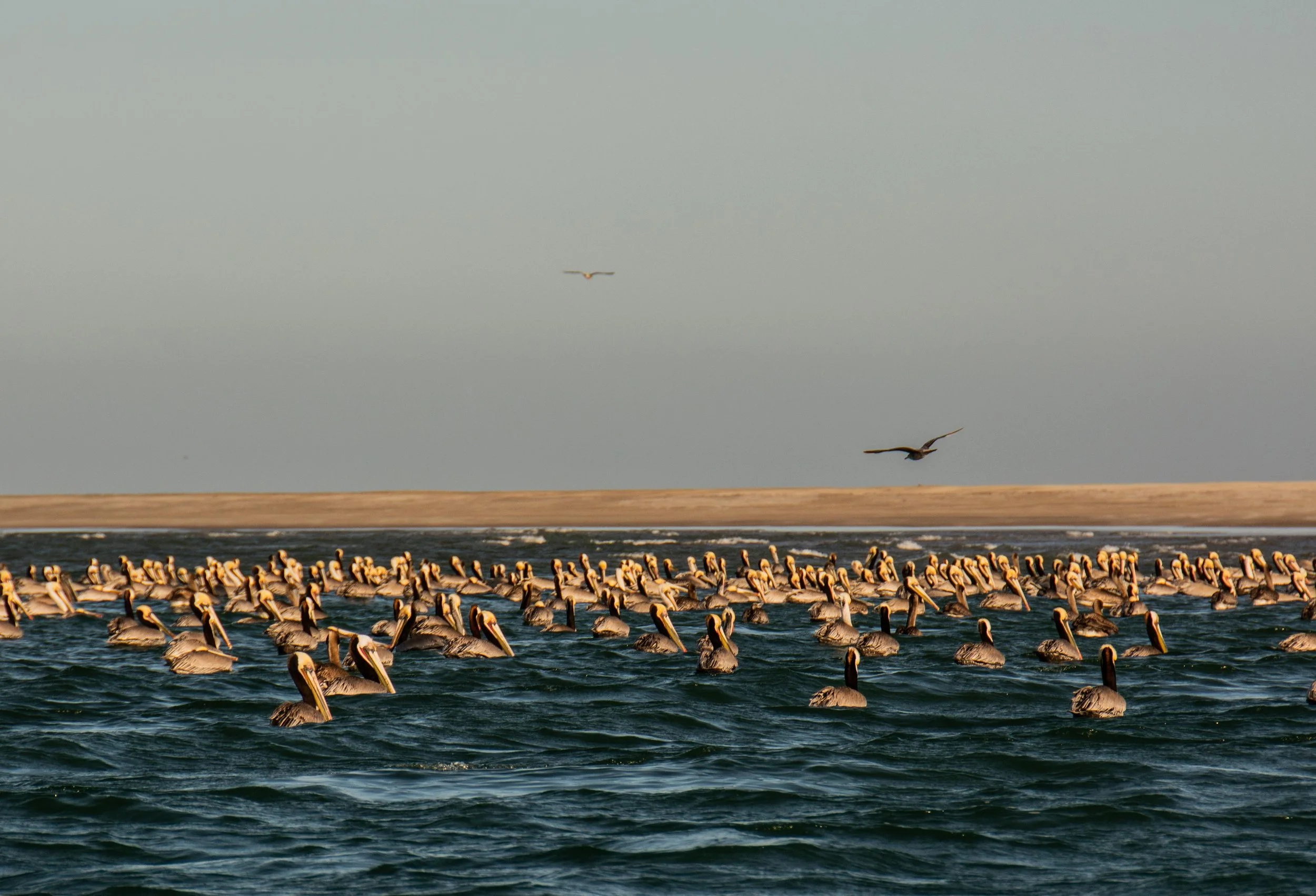 The next morning, bright-eyed and bushy-tailed, we met at the harbour and were soon on our way. The fishing in the lagoons and out into the sea is very good and there were many seabirds, including a flock of several hundred pelicans we passed on our way.