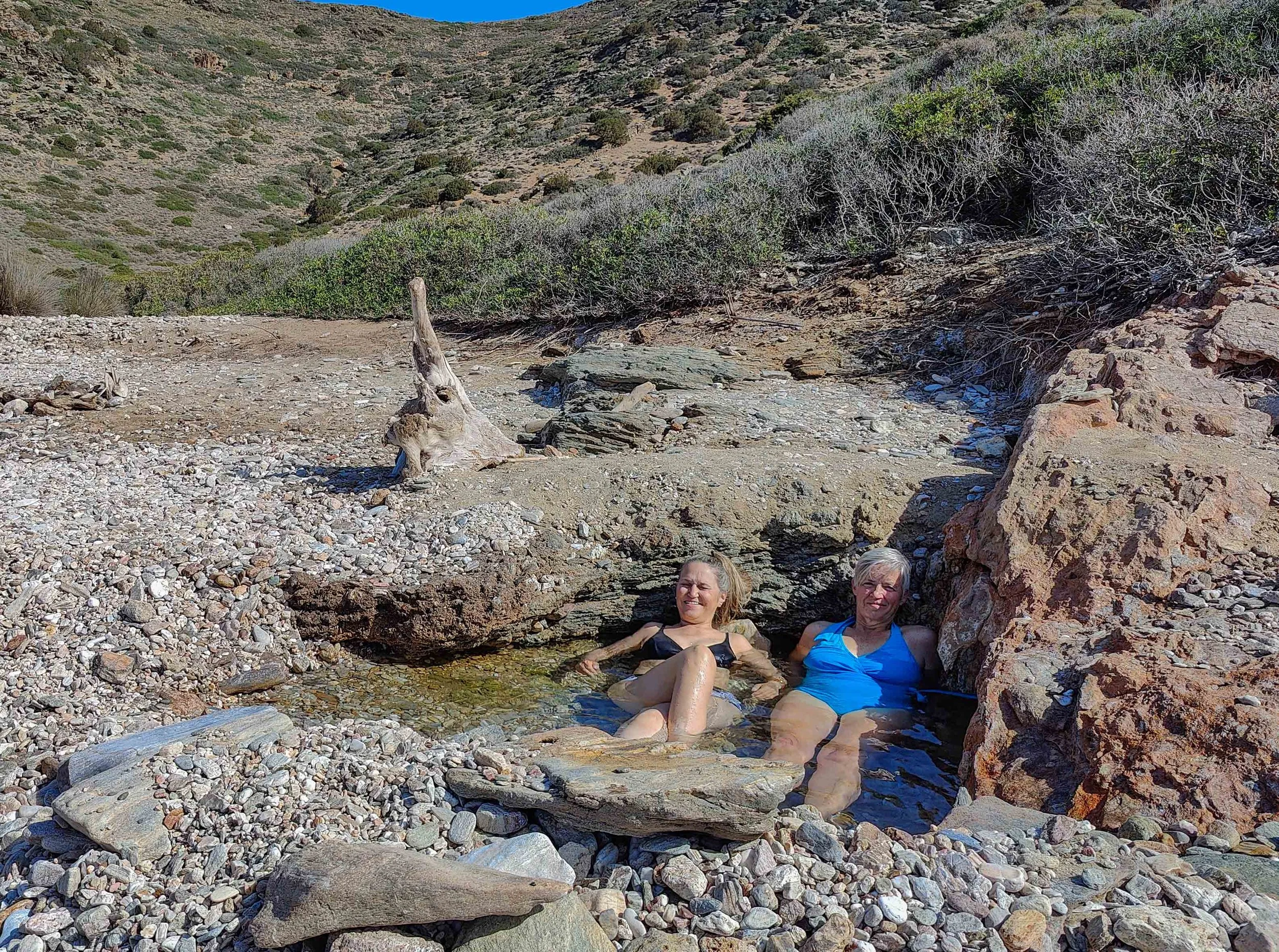 Photo 18. Esthi and Ursula taking advantage of the warm water spring on the beach.