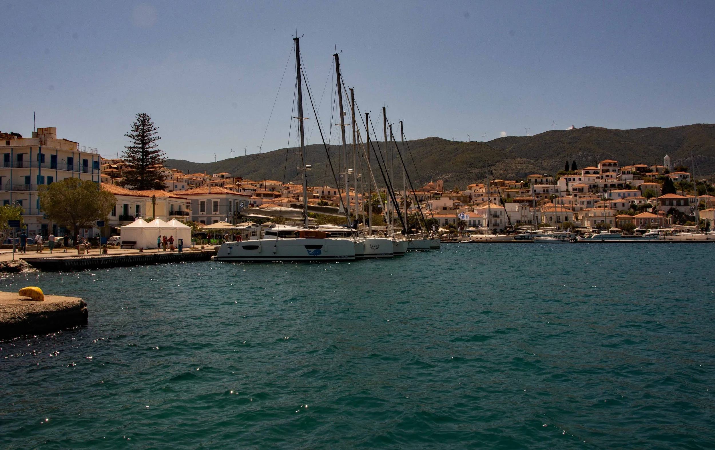 Photo 5. The anchorage at Poros, our catamaran the Wild Baleine is the closest boat