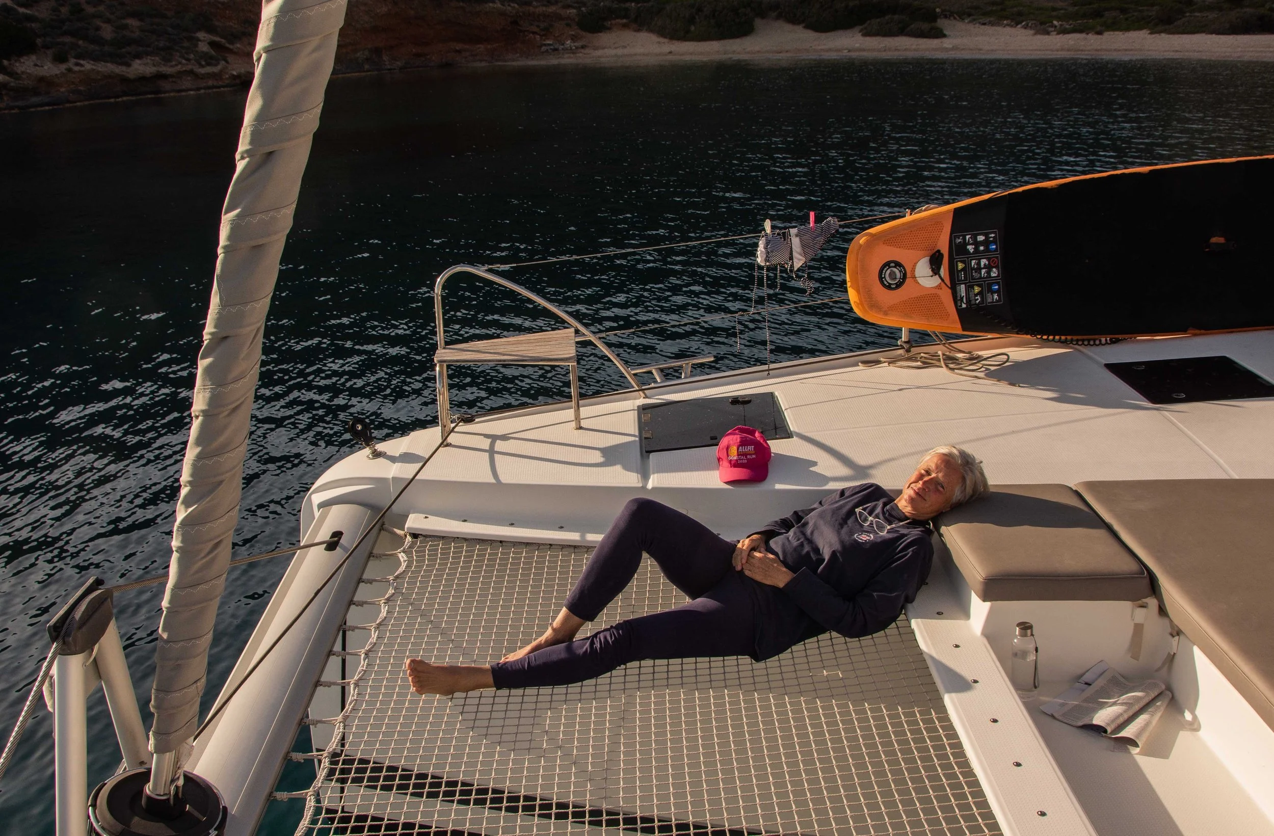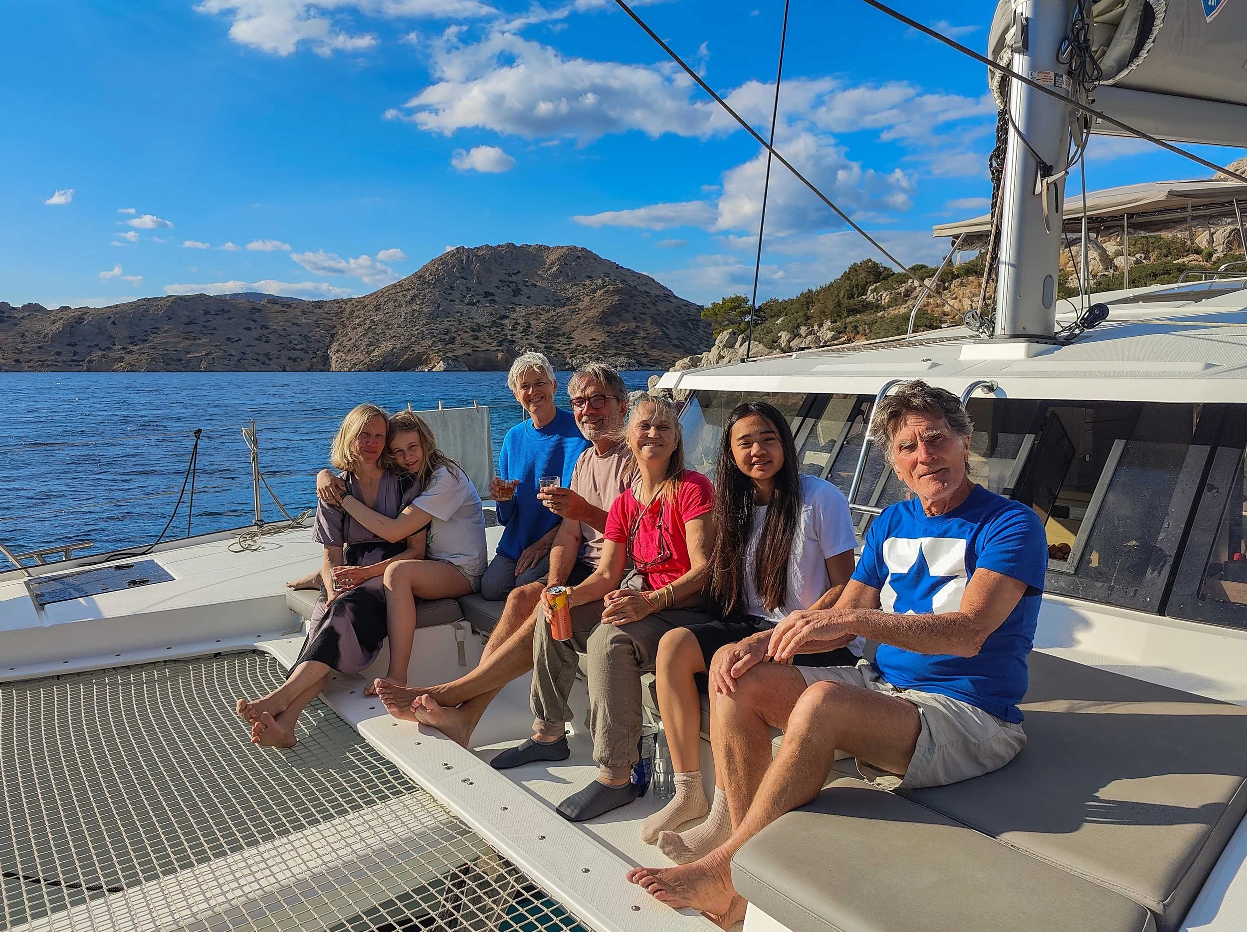 A word on the organisation; The catamaran, the Wild Baleine, was hired by Reto and his wife Kristina, friends of the other participants. Reto and Kristina live in Greece and Reto has wide experience of sailing in the Aegean. The other members of the group were Esthi and daughter Hanna, and Kathrin and her daughter Maelle. With Ursula and me that made a crew of 8.