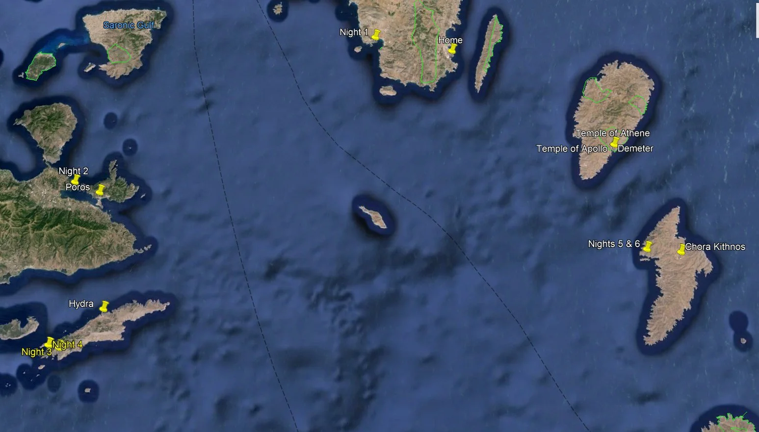 We left Poros in the early afternoon, just as the wind, as predicted, was picking up. We sailed first south then west through the channel separating the island of Hydra and Poros. Rounding the tip of the island of Hydra we made anchorage in another beautiful and protected bay. Night 3 on the map at the end of the blog.