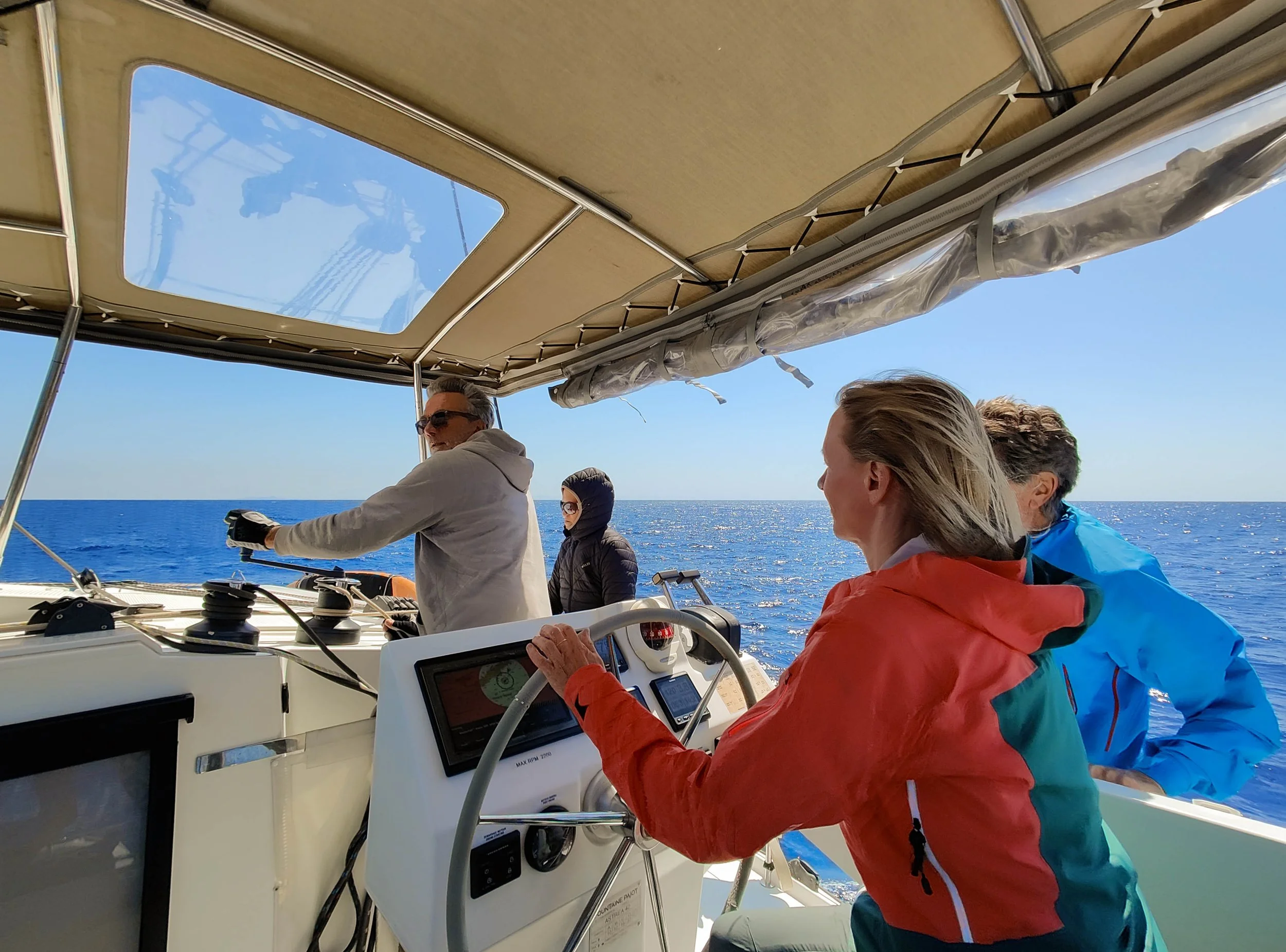 On day 4 was to be the longest leg of the trip, an estimated 8 hour crossing across the straight to the bay of Ormos Kolona. The day started well with the wind a gentle 15 – 18 knot (28 – 33 km/h) wind and mild seas.