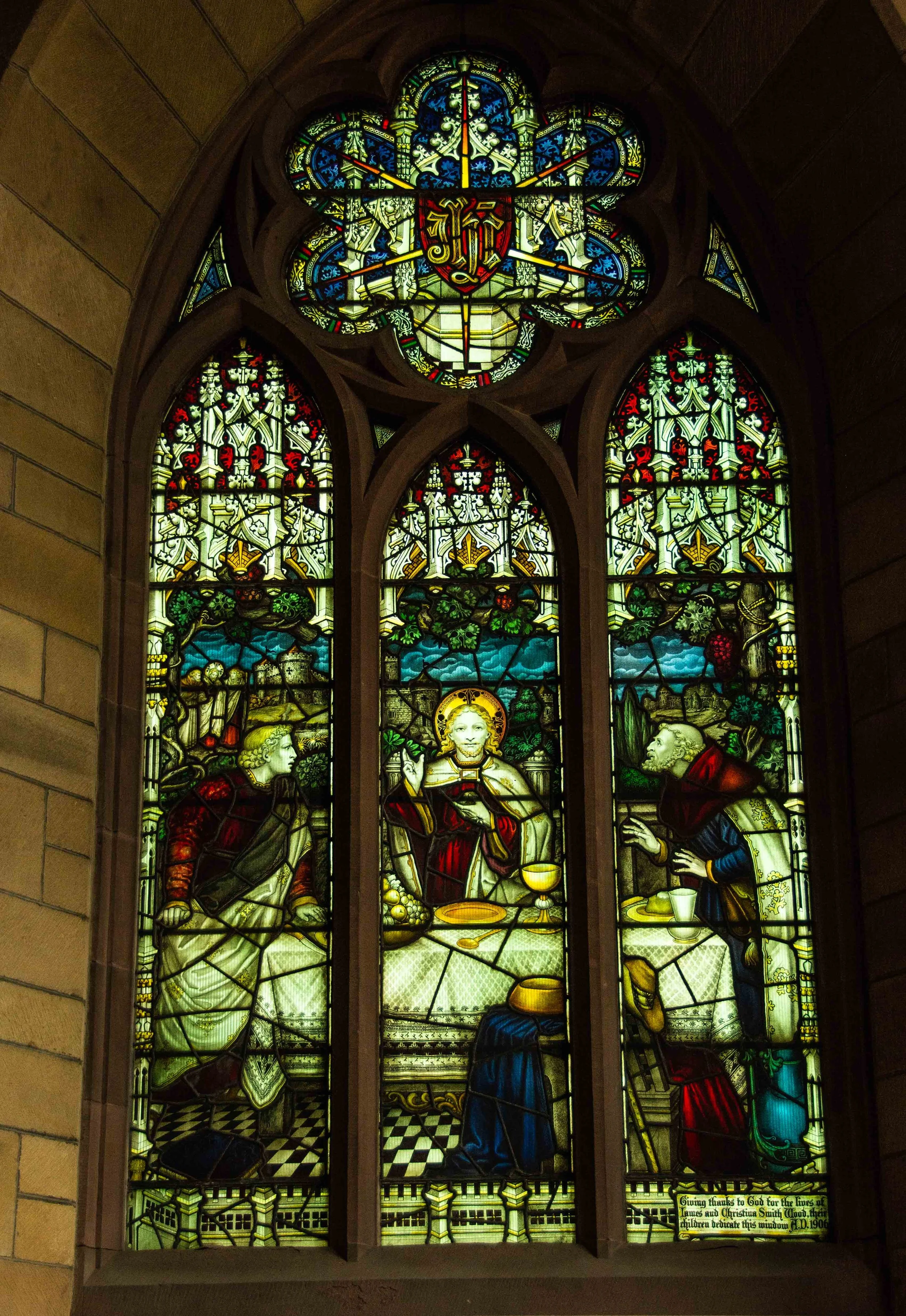 One thing I had not expected was the beautiful stained-glass window dedicated to our great-grandparents by their children. I particularly liked the faces in the window.